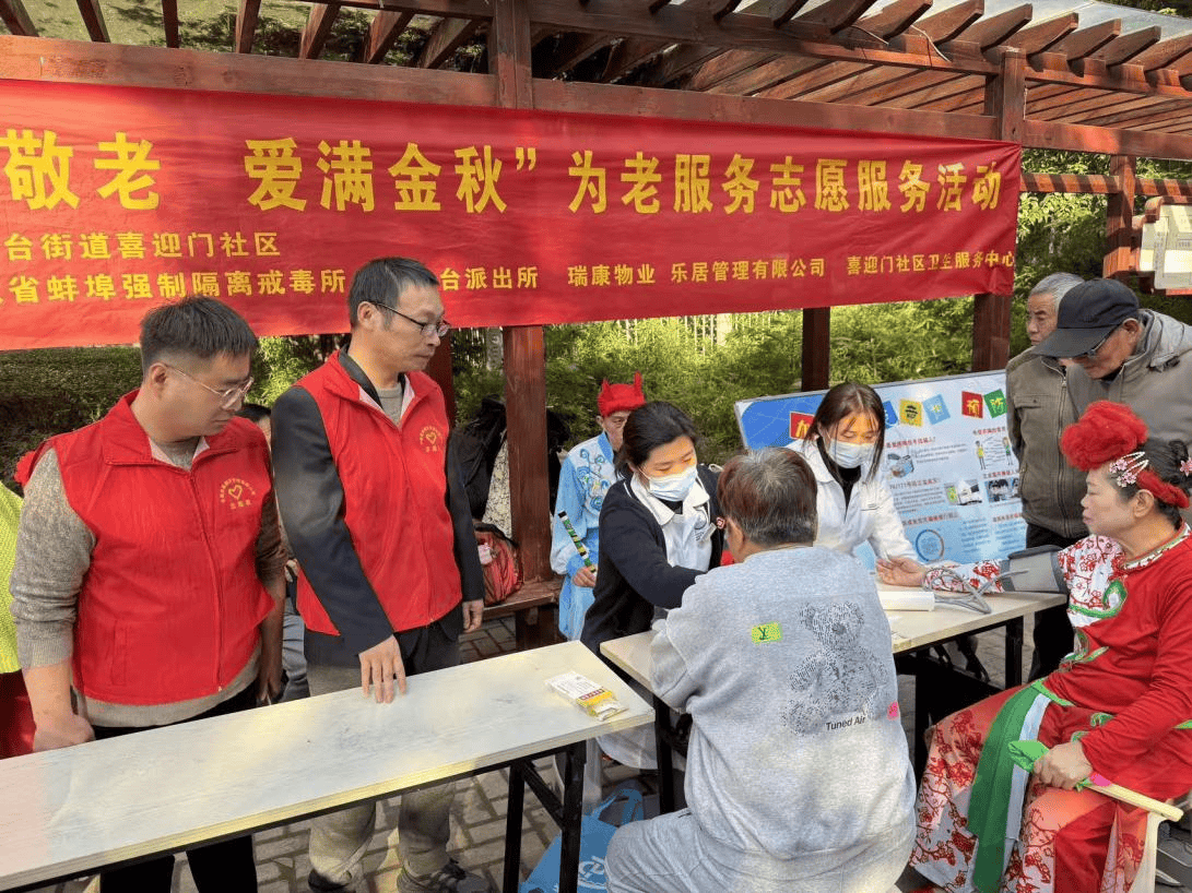 津有味,不時(shí)點(diǎn)頭鼓掌,還跟著旋律輕聲跟唱,臉上洋溢著幸福的笑容。匯演一側(cè)的便民服務(wù)區(qū)同樣人氣十足,房管員聯(lián)動(dòng)社區(qū)衛(wèi)生服務(wù)站開(kāi)展義診,醫(yī)護(hù)人員耐心為老人們免費(fèi)測(cè)量血壓、檢測(cè)血糖,細(xì)致解答慢性病用藥規(guī)范、秋冬養(yǎng)生保健等問(wèn)題;專(zhuān)業(yè)理發(fā)師坐鎮(zhèn)義剪專(zhuān)區(qū),根據(jù)老人們的需求精心修剪發(fā)型,讓大家以清爽整潔的模樣歡度佳節(jié);針對(duì)行動(dòng)不便、無(wú)法出門(mén)的老人,工作人員主動(dòng)上門(mén)探望,隨身攜帶血壓儀、常用藥品與節(jié)日慰問(wèn)品,把關(guān)懷送到老人心坎上。此次活動(dòng)共吸引100余名老年居民參與,大家紛紛點(diǎn)贊:“在家門(mén)口就能看戲、做檢查,感謝黨和政府讓我們的日子過(guò)得既踏實(shí)又暖心!”